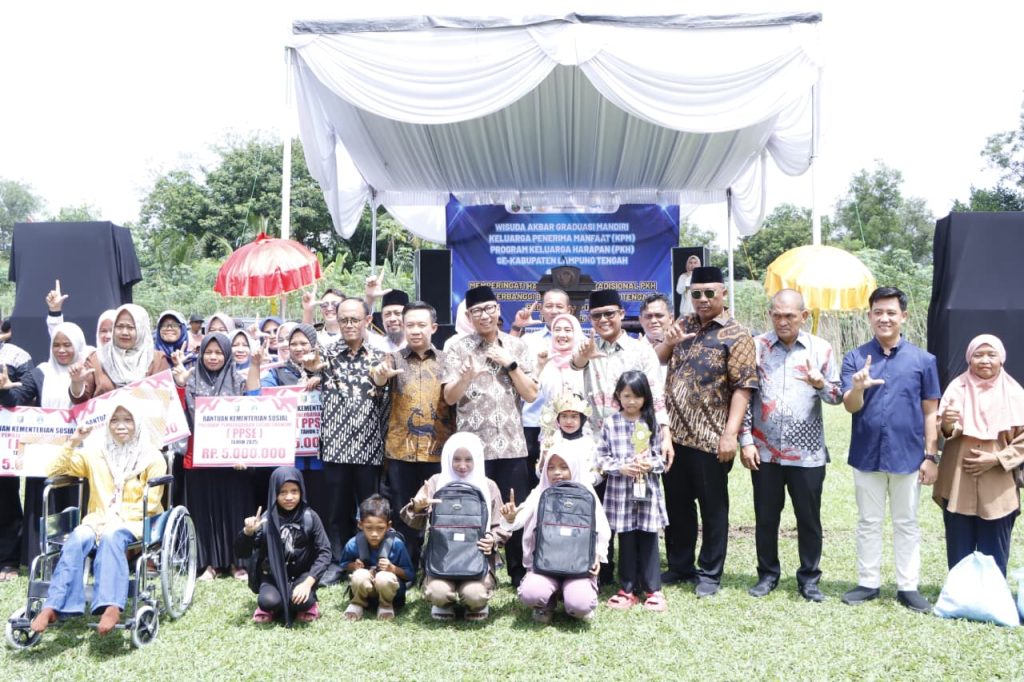 Bupati Ardito Wijaya memberikan apresiasi atas semangat para KPM yang berhasil mandiri. “Hari ini kita menyaksikan lahirnya keluarga-keluarga yang mampu berdiri di atas kaki sendiri. Graduasi mandiri ini menjadi bukti bahwa program PKH di Lampung Tengah berjalan efektif dan menumbuhkan kemandirian.”